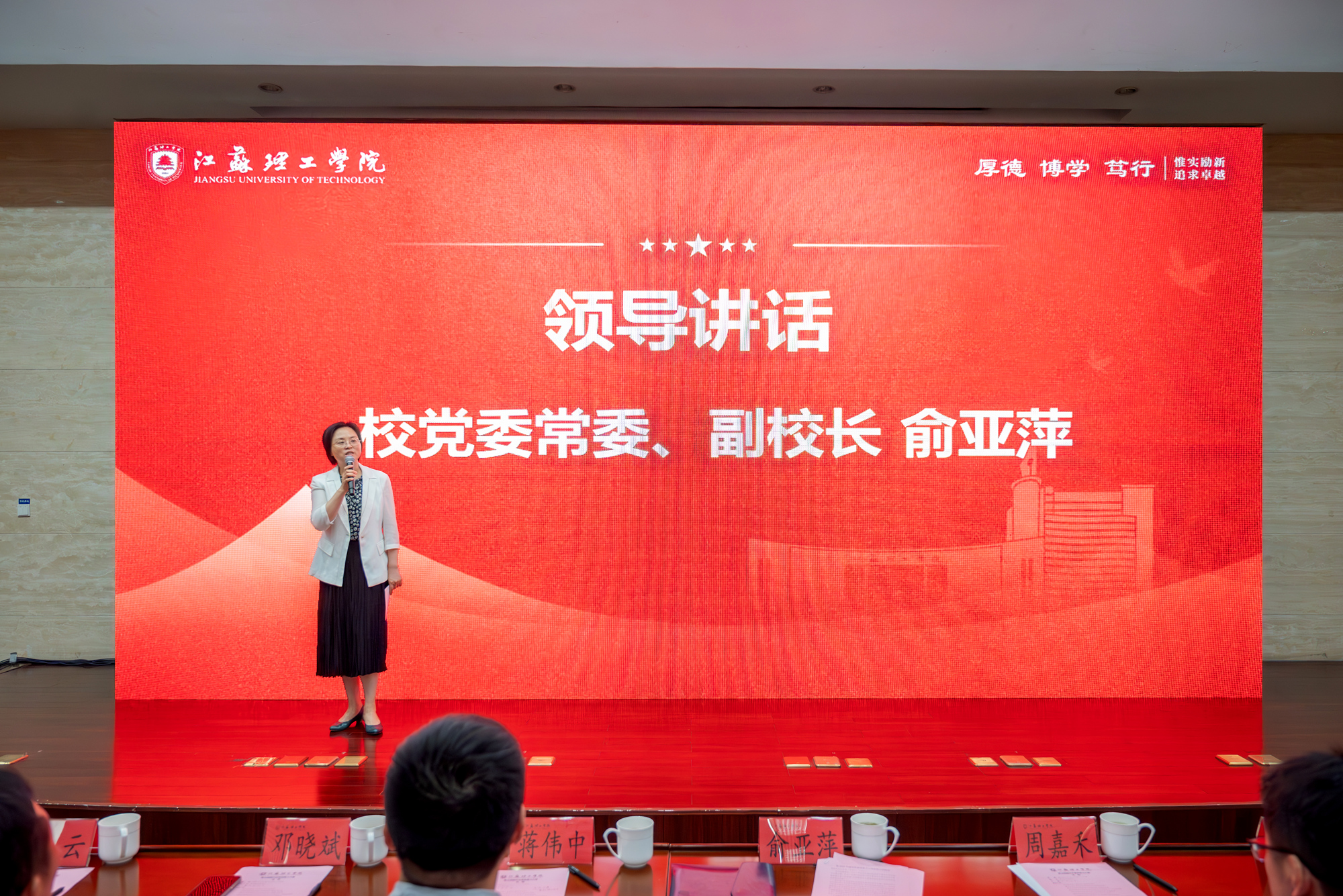 俞亚萍致辞,她代表学校向莅临指导的评委专家表示热烈欢迎,向筹备赛事的师生团队致以诚挚感谢。她指出,辅导员素质能力大赛是学校落实立德树人根本任务、加强辅导员队伍专业化职业化建设的重要抓手。针对全体辅导员,她提出三点期望:一是要以学为先,做知行合一的思想引领者。辅导员要坚持用党的创新理论武装头脑,提升思想政治工作亲和力与实效性,成为学生成长道路上的“知行导师”;二是要以爱为基,成为学生成长的暖心引路人。辅导员要深入学生群体,关注思想动态与情感需求,引导学生树立正确世界观、人生观、价值观,成为学生可信赖的“成长伙伴”;三是要以责为重,做学校发展的有力推动者。辅导员要主动融入学校中心工作,积极参与教育教学改革,将个人职业发展与学校人才培养目标深度融合,为加快建成特色鲜明的一流应用型大学贡献力量。