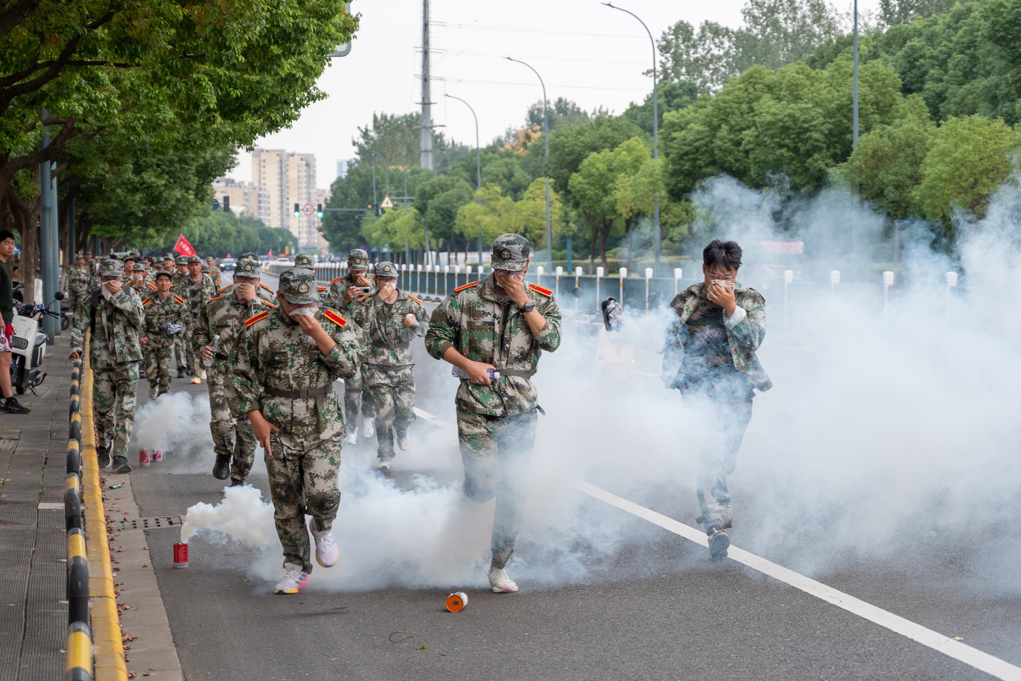 为保障此次拉练活动安全有序,学校在活动前做了大量细致入微的准备工作。相关部门组织专人对拉练路线进行了全面、深入的勘探踩点,详细了解路线的交通状况,制定科学严谨的行军方案。在行军途经的重要位置安排引导员,设置补给站,为拉练学生提供行军指引、饮用水和基础医疗物资等,全体教官、学工团队、辖地交警、学校安保等全程护航,在大家的共同努力下,本次行军拉练完成了徒步行军、通过染毒地带、敌机侦察等科目,为同学们带来了一场难忘的、充满硝烟的行军演练。