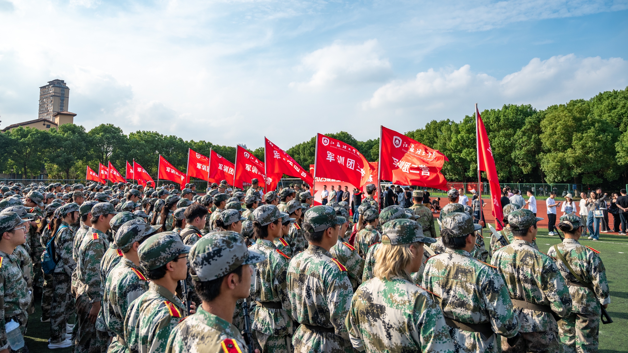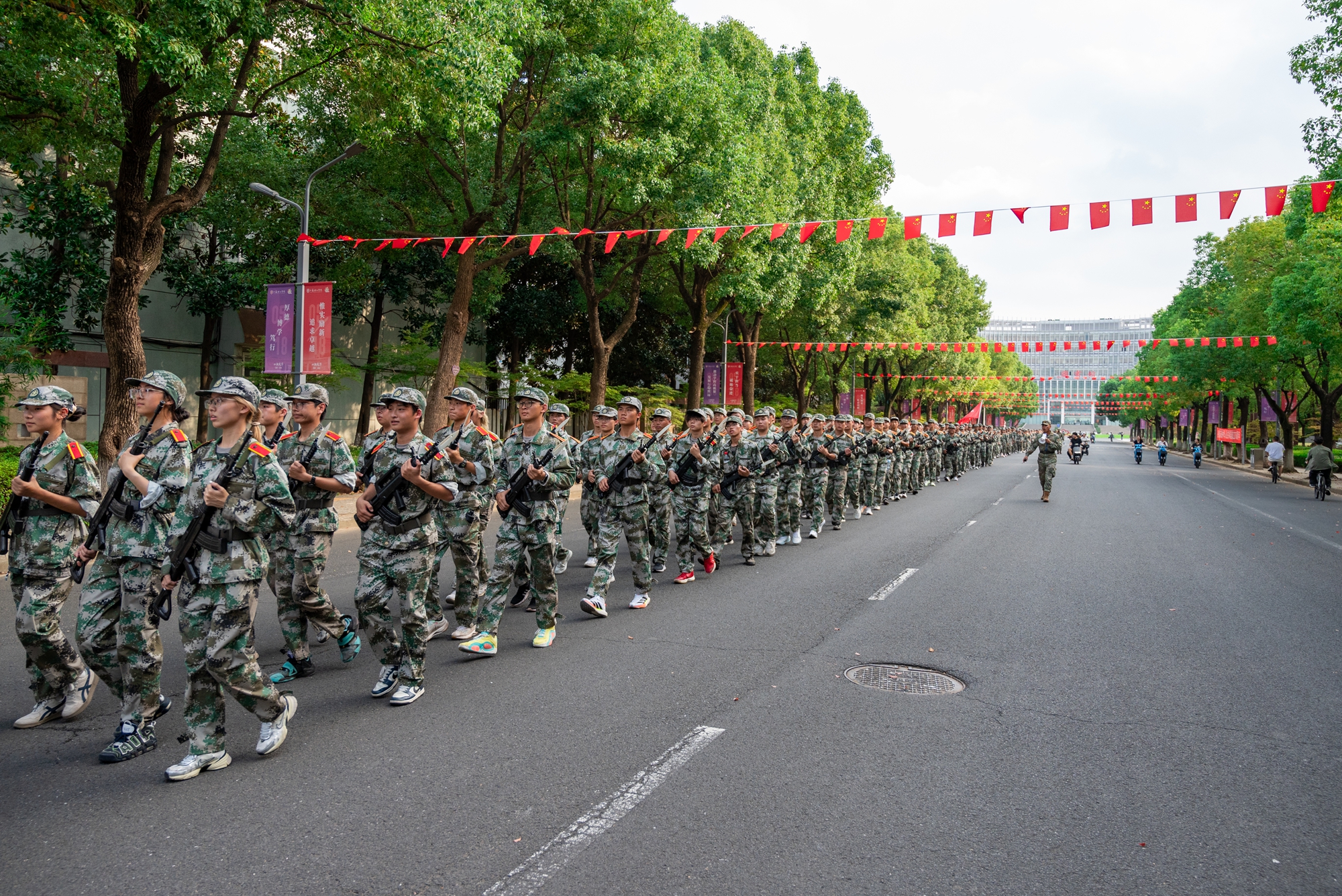 下午3时许,行军拉练出征仪式在南苑田径场举行,2025级本科生军训团13个营48个连的全体参训学生整装待发,伴随着军训团团长“按计划进行”的口令和响亮的发令枪声,全体参训学生在军训团团旗的引领下,步伐整齐、精神抖擞地从南苑田径场北门依次出发,正式踏上了全程五公里的拉练征程。